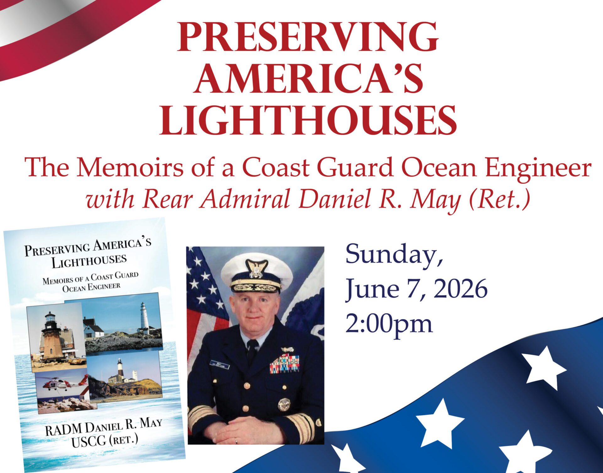 Join Daniel R. May for a fascinating presentation on his decades of dedication to preserving America’s historic lighthouses and other vital aids to navigation.