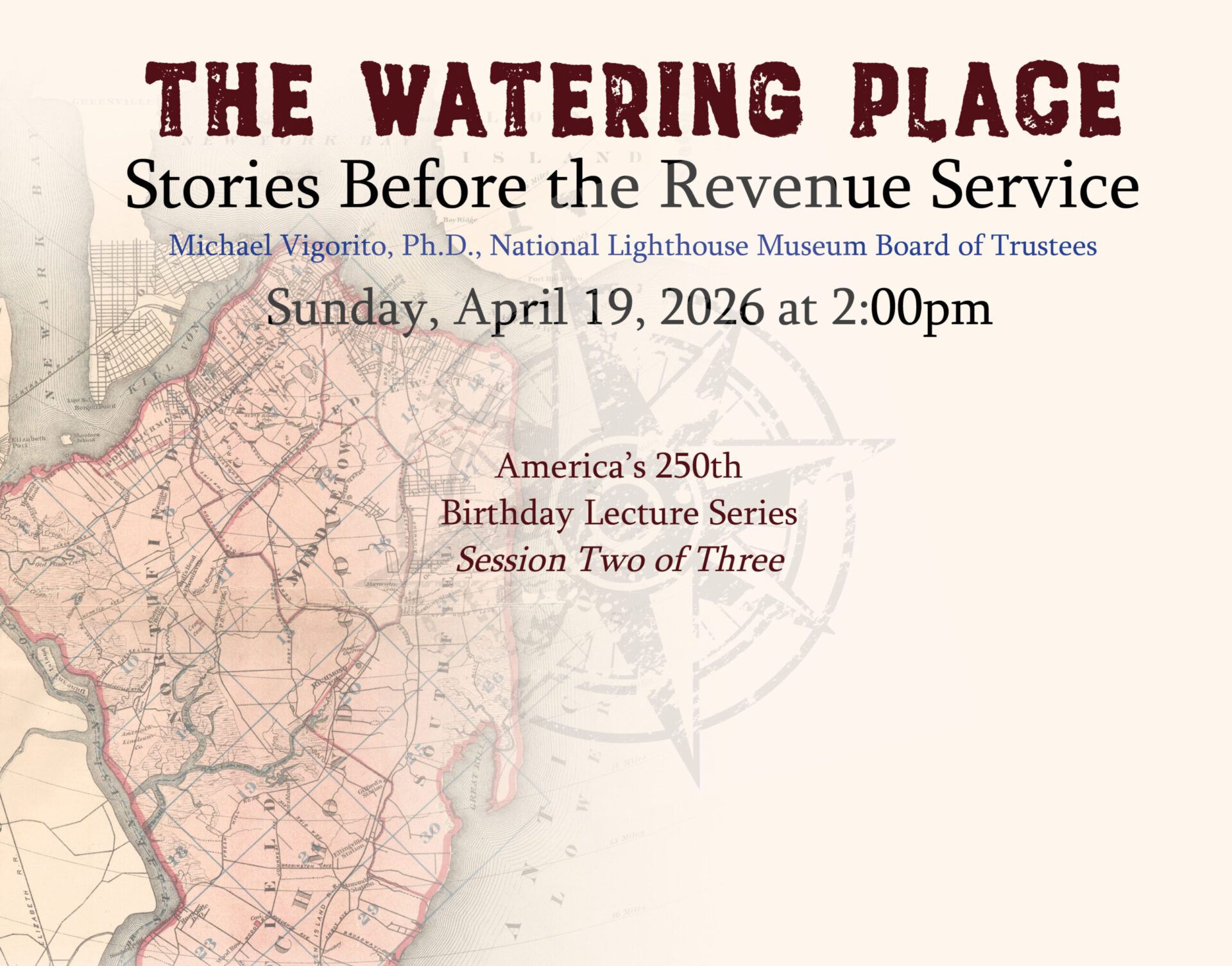This second talk of the series explores the early history of Staten Island’s northeastern shoreline, long before lighthouses and federal patrols shaped the harbor. From early European encounters and Dutch settlement efforts to the French and Indian War and the Revolutionary War, we will trace how the Watering Place evolved from a source of fresh water and a quiet farmstead into a strategic military staging ground. Through vivid local episodes—including violent struggles with the indigenous people, an unusual knighting ceremony, and the arrival of a massive British fleet—the talk reveals how this overlooked shoreline played a pivotal role in New York Harbor’s colonial and revolutionary past, linking these early stories to Staten Island’s later maritime and public health history.